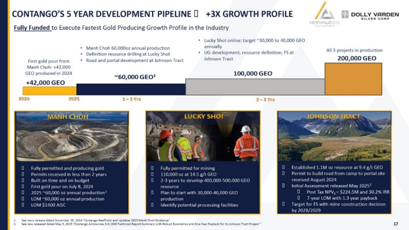 “There’s a property in the Contango portfolio called Lucky Shot. A big drill program is planned and fully funded for 2026. If Lucky shot is brought into that pipeline, whether that's in 2027 or 2028, that could take Contango’s pro forma production profile from 60,000 ounces to 90,000 ounces and then to 110,000 ounces. Dolly Varden's Kitsault Valley assets can add another significant production layer.”
