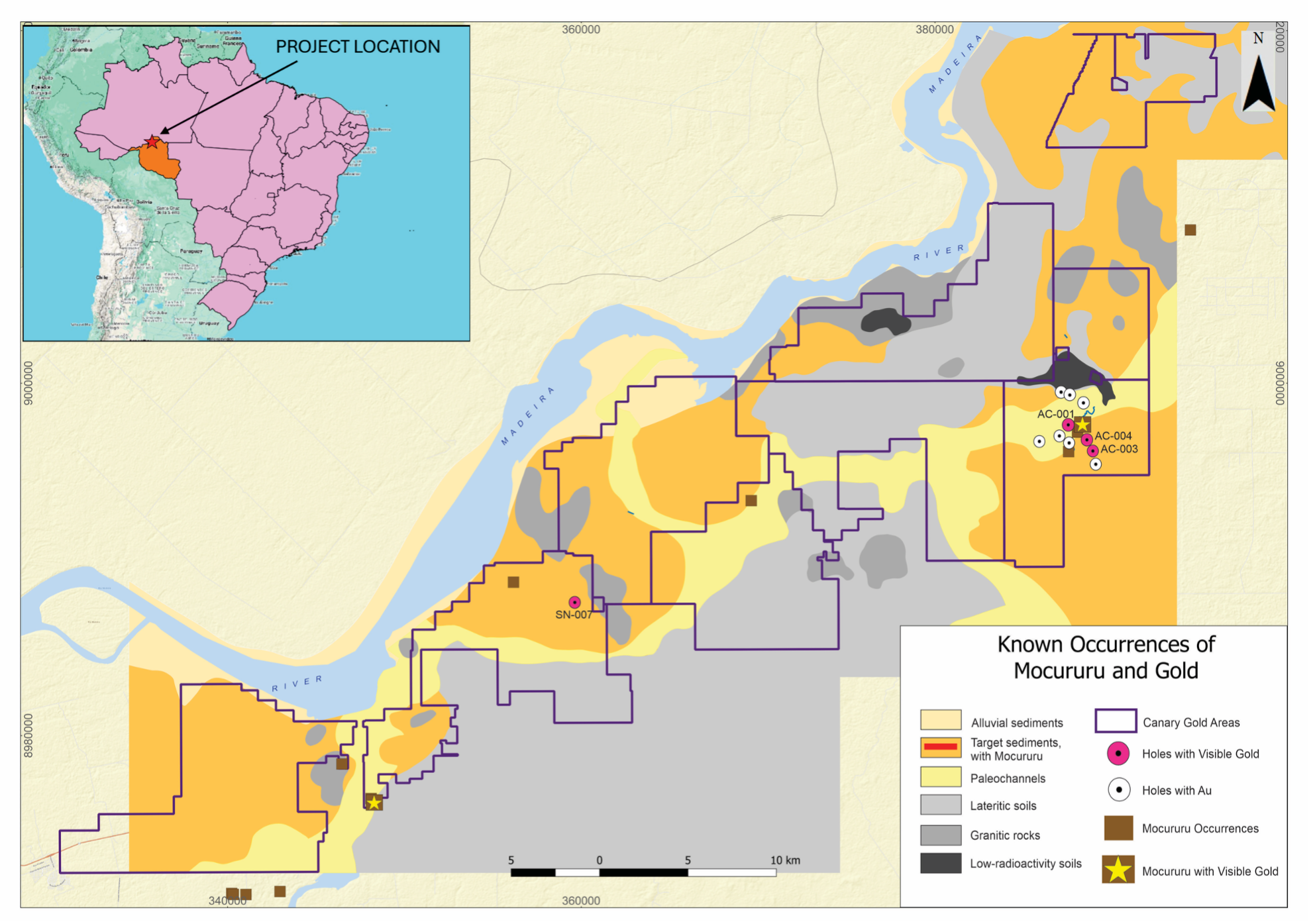 The results significantly strengthen the Company’s geological thesis that gold-bearing sediments, originating from erosion of the Andes Mountains, have accumulated within the Madeira River basin in Rondônia, Brazil, over extended periods. This supports the potential for sediment-hosted and paleoplacer gold systems across Canary’s expanding land position.