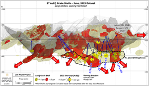 VANCOUVER, British Columbia, June 20, 2023 (GLOBE NEWSWIRE) -- Prime Mining Corp. (“Prime” or the “Company”) (TSX-V: PRYM, OTCQX: PRMNF, Frankfurt: 04V3) is reporting drill results from four holes at the Z-T Area, one of three main zones hosting the gold-silver mineral resource estimate (“MRE”) announced May 2, 2023 at the Company’s Los Reyes Project located in Sinaloa State, Mexico. A 2023 Technical Report was filed on June 13, 2023 and can be found on the Company's website at https://primeminingcorp.ca/ and on SEDAR at www.sedar.com, under the Company’s Issuer Profile.