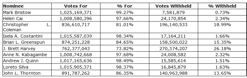 Votes for % for Votes withheld % withheld