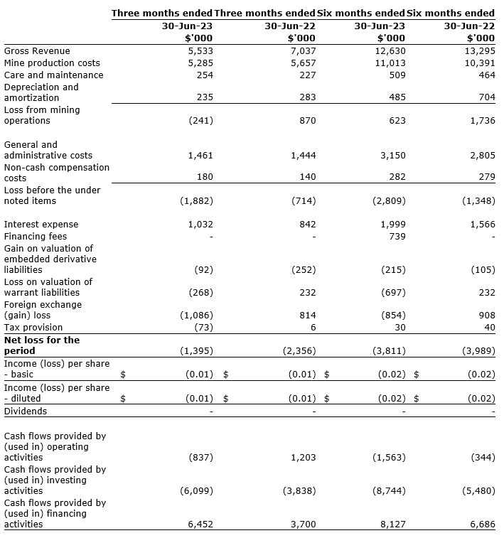 ALMONTY ANNOUNCES THE FILING OF ITS UNAUDITED INTERIM CONDENSED CONSOLIDATED FINANCIAL STATEMENTS AND MD&A FOR THE SIX MONTHS ENDED JUNE 30, 2023 AND $1.1M IN POSITIVE EBITDA FROM MINING OPERATIONS(1).