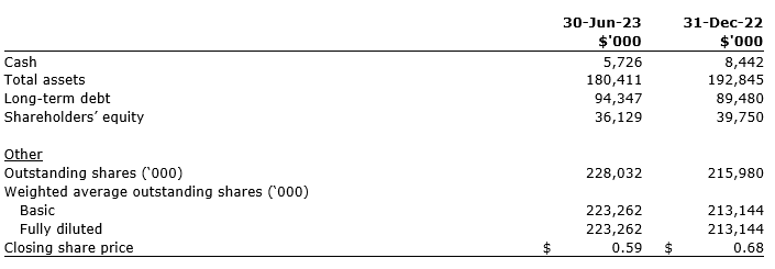 The financial information in the attached table is as at June 30, 2023, and Dec. 31, 2022.