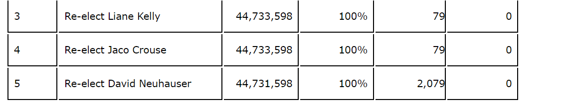 The proxy votes received from shareholders for the AGM are outlined in an attached table.
