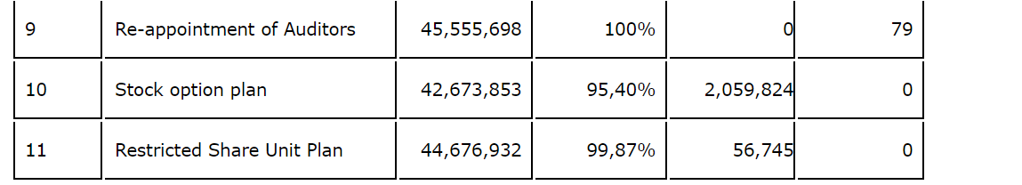 ANNUAL GENERAL AND SPECIAL MEETING (AGM) RESULTS