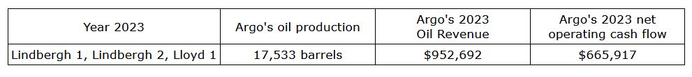 ARGO'S 2023 OIL PRODUCTION