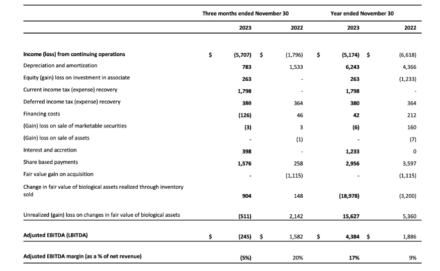 Avant Brands Inc. has released its audited financial results for the fiscal year ended Nov. 30, 2023 (fiscal 2023).