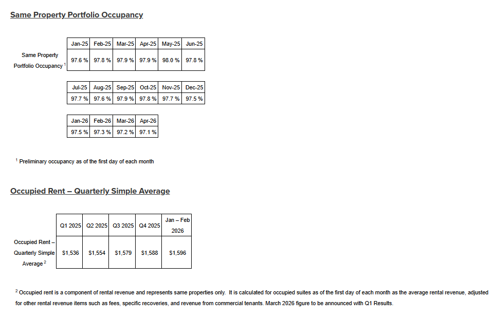 "As we enter our spring leasing season with occupancy above 97 per cent, our team remains focused on providing the best service, quality and experience to our resident family members. While we continue to see more choice at the higher price points, our significant reinvestment in our communities over the last several years provides an exceptional value proposition to our stakeholders. The trust remains well positioned with our largest market of Alberta leading the country in economic growth, having the lowest debt-to-GDP [gross domestic product] and having some of the best affordability in the country.