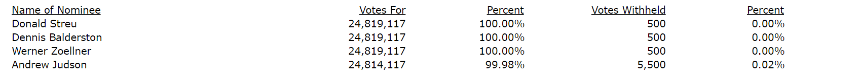 CONDOR ANNOUNCES DIRECTOR ELECTION RESULTS