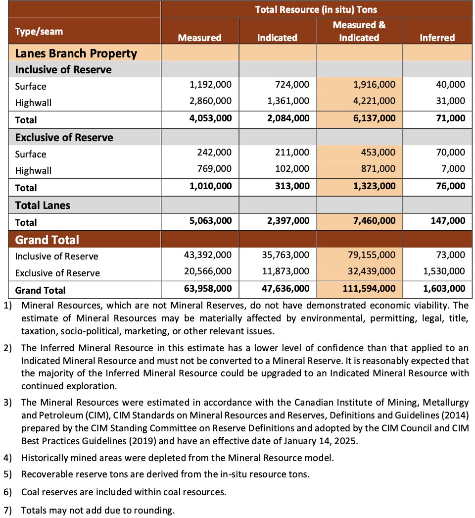 Please see the technical report in respect of the ARI project entitled "Pre-Feasibility Technical Report on the Coal Resource and Coal Reserve Controlled by Active Resources Inc., West Virginia, USA -- Prepared in Accordance with National Instrument 43-101 for Disclosure for Mineral Projects" dated Dec. 15, 2025, with an effective date of June 30, 2025, for further details, which is available for review under the company's SEDAR+ profile.