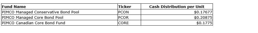 PIMCO CANADA CORP. ANNOUNCES QUARTERLY DISTRIBUTIONS FOR PIMCO CANADA EXCHANGE TRADED SERIES