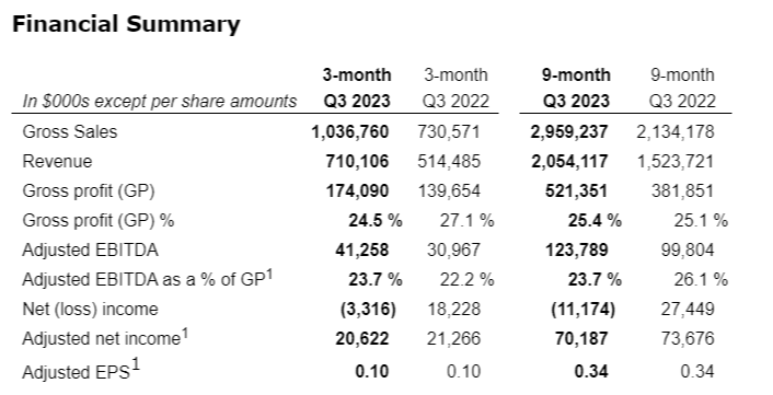 - Gross profit increased 25 per cent to $174.1-million from $139.7-million in Q3 2022;
