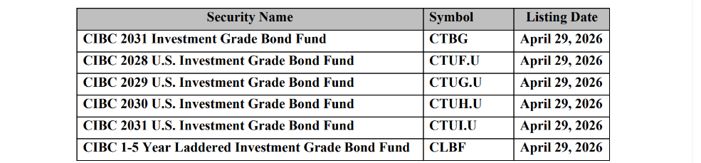 Subject to confirmation of closing, units of the CIBC funds will be listed and available for