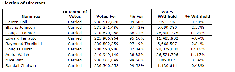 Specifically, shareholders voted to approve:
