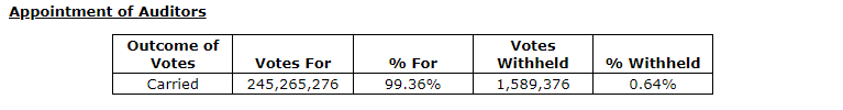 Detailed results of the voting are set out in the attached tables.