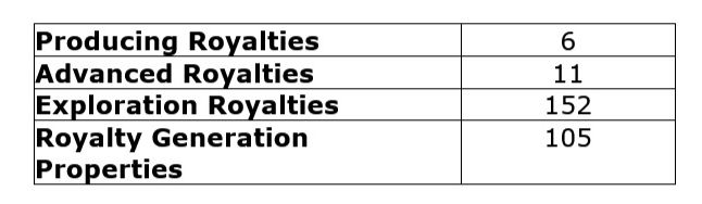 During Q2 2023, the company's royalty generation business was active in North America, South America, Europe, Turkey, Australia and Morocco. The company spent $4,255,000 (Q2 2022 -- $5,108,000) on royalty generation costs and recovered $1,811,000 (Q2 2022 -- $2,014,000) from partners. Royalty generation costs include exploration related activities, technical services, project marketing, land and legal costs, as well as third party due diligence for acquisitions. Included in revenue and other income was $807,000 in option, advance royalty and other preproduction payments related to existing partnered projects as a result of the royalty generating activities. During Q2 2023, the company also completed two new partnerships across the portfolio while continuing to replace partnered properties with new royalty generation projects.