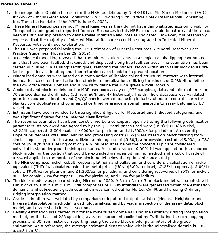 The company acknowledges the financial contributions being provided by the Province of Ontario's Critical Minerals Innovation Fund (CMIF) and the government of Canada through the industrial research assistance program (IRAP) in assisting with the implementation of EV Nickel's Clean Nickel research and development program.