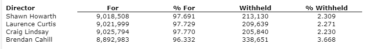 Detailed results from the election of directors are set out herein.