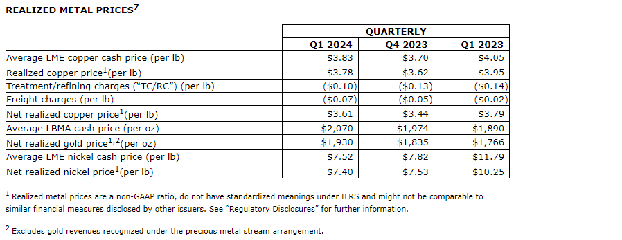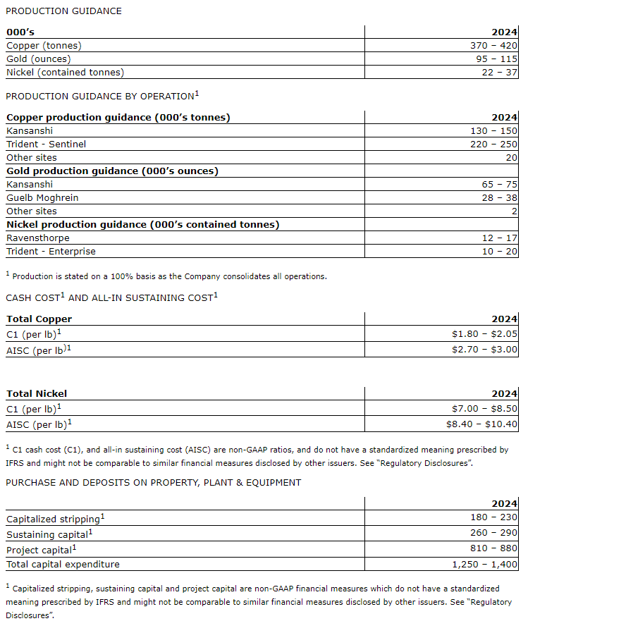 Guidance is based on a number of assumptions and estimates as of March 31, 2024, including among other things, assumptions about metal prices and anticipated costs and expenditures. Guidance involves estimates of known and unknown risks, uncertainties and other factors, which may cause the actual results to be materially different.