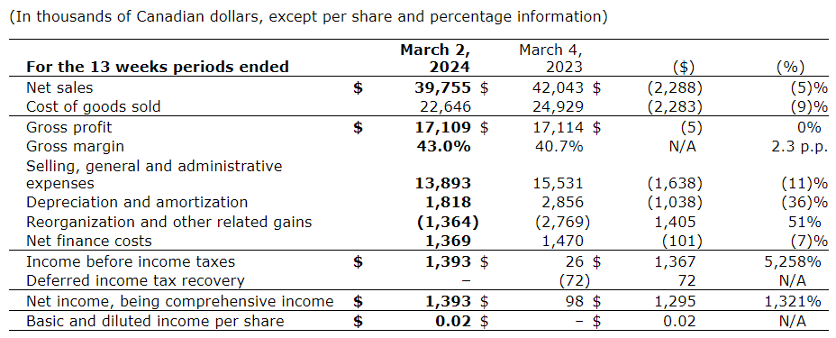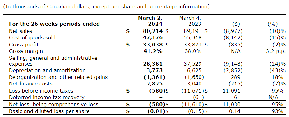 A full version of the company's management's discussion and analysis (MD&A), and consolidated financial statements for the second quarters ended March 2, 2024, and March 4, 2023, will be posted on SEDAR+ later today.