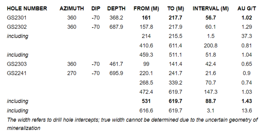 1.29 g/t Au over 60.1m (GS2302)