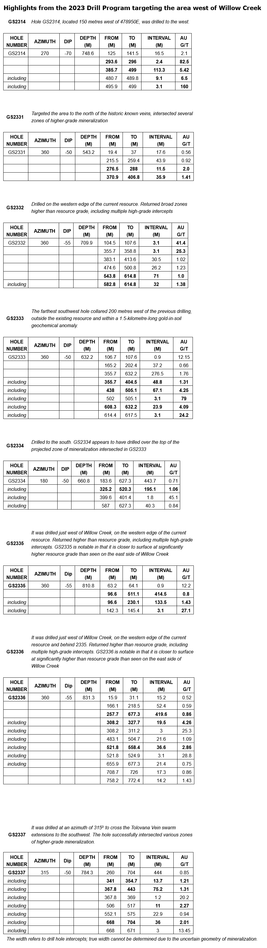 In addition to the ongoing drill program, metallurgical, baseline environmental, cultural resource, and wetland studies are underway. An updated mineral resource estimate based on the 2023 drill program is scheduled to be completed by the end of Q2 2024.