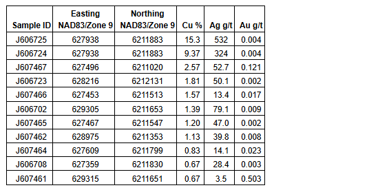 Finlay Minerals samples 15.3% Cu, 532 g/t Ag at SAY