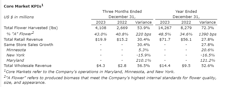 Amber Shimpa, president and CEO of Vireo Health of Minnesota, commented: "Our operational key performance indicators continued to show strong improvements both during the fourth quarter and over the past 12 months. We remain especially pleased with the progress we've made with our focus on decentralized operations during the year, allowing our local teams and support from partners like Grown Rogue to help drive decision-making for improved product quality and fundamental performance. We believe our continued market outperformance in Maryland's recently launched adult-use market demonstrates that we are ready to compete effectively in adult-use cannabis markets, and we are looking forward to the launch of adult-use sales in Minnesota in 2025. We expect to provide additional updates surrounding our initiatives to ensure a successful adult-use launch in Minnesota in the coming quarters."