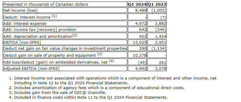 The attached table reconciles these non-IFRS (international financial reporting standards) measures to the most directly comparable IFRS measure disclosed in the annual financial statements, which is net income (loss).