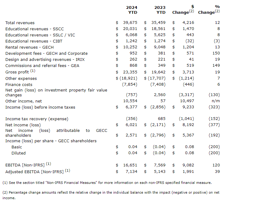 "Over all, GECC's net income before income tax reached $6,377,000, an increase of $9,233,000 from the same period last year. EBITDA increased to $16,651,000, an increase of 120 per cent year over year. Net income for GECC shareholders in Q2 2024 was four cents per share.