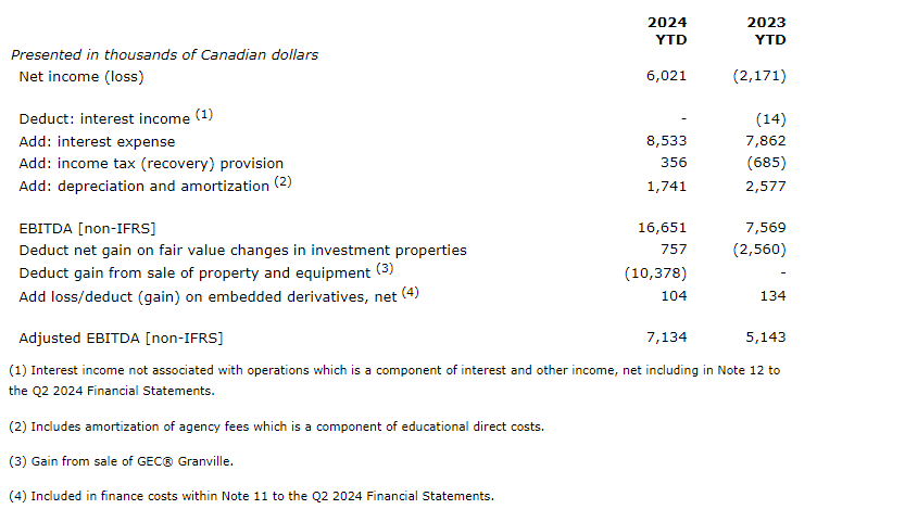 The attached table reconciles the non-IFRS (international financial reporting standards) measures in the first attached table to the most directly comparable IFRS measure disclosed in the Q2 2024 financial statements, which is net income (loss).