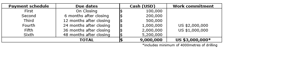 The option agreement will be in a form generally common for mineral property purchase options in Chile, including comprehensive representations and warranties by the vendors as to the status of the concessions, the corporate status and power of each of the parties, comprehensive covenants, and other protections for the benefit of the parties.