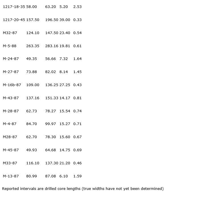 • 3.05 g/t Au over 7.62 metres (M-12-87);