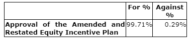 The company's amended and restated equity incentive plan was approved by disinterested shareholders.