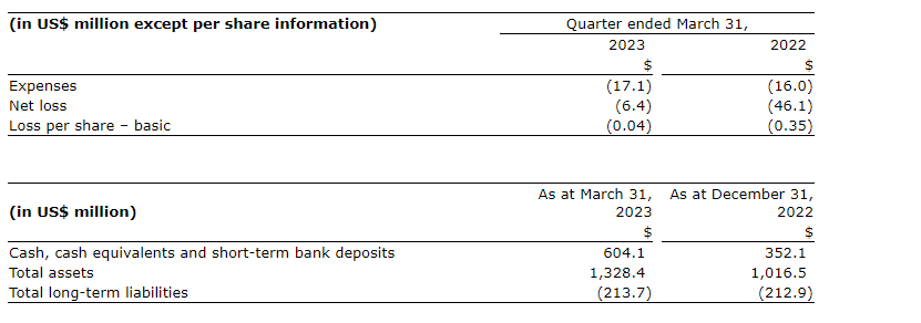 In Q1 2023, total assets increased primarily due to cash proceeds from the first tranche investment by GM of $320-million and commencement of construction of the Thacker Pass project and, as a result, capitalization of the related project construction costs.
