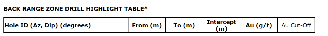 Drill results from 15 additional RC drill holes completed in the Rangefront zone have been received, with results confirming that the newly discovered extension to high-grade mineralization shows strong lateral continuity over a large area. These infill holes were drilled to convert currently classified inferred resource blocks to indicated resource blocks, and to further define the thick, near-surface zones of oxide gold mineralization discovered on the eastern margin of the Rangefront zone earlier in the year (see press release dated Sept. 7, 2023). This area remains open and is a key target for the next phase of resource expansion drilling in 2024.