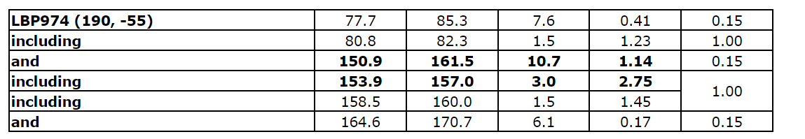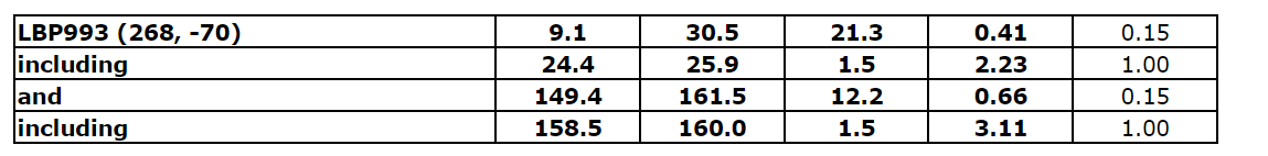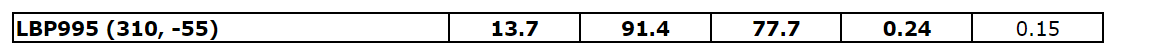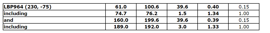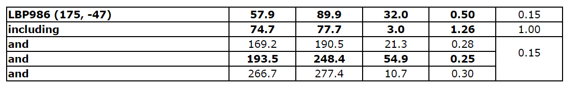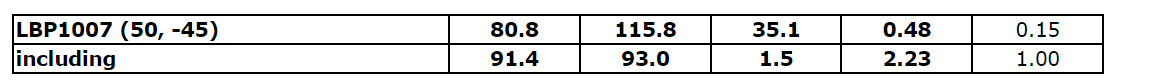 Drill results from 16 additional RC drill holes completed in the Back Range zone have been received, with results confirming the known mineralization and opening up potential new zones of mineralization to the north and west. Notably, a thick zone of mineralization defined by hole LBP1005 begins at surface and extends down to 100 metres depth. This is the northernmost hole drilled in the Back Range zone, and this new zone of mineralization is open for extension and expansion through additional drill testing in 2024.
