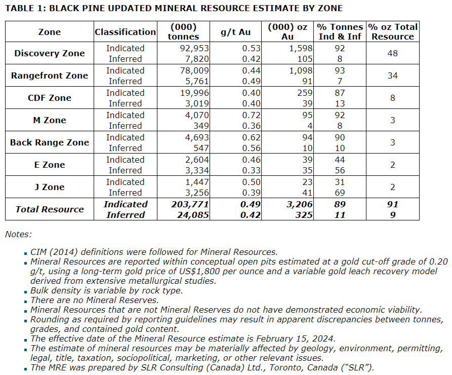 "This updated mineral resource estimate represents an important milestone for the Black Pine project, passing three million gold ounces in the indicated class. The new resource solidly underpins the prefeasibility study, which is on track for completion in the third quarter 2024."