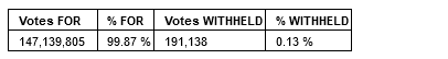 All director nominees set out in the Management Information Circular dated December 11, 2023 (the "Circular"), were elected as directors, to serve until the next meeting of shareholders of the company or until their successors are elected or appointed.