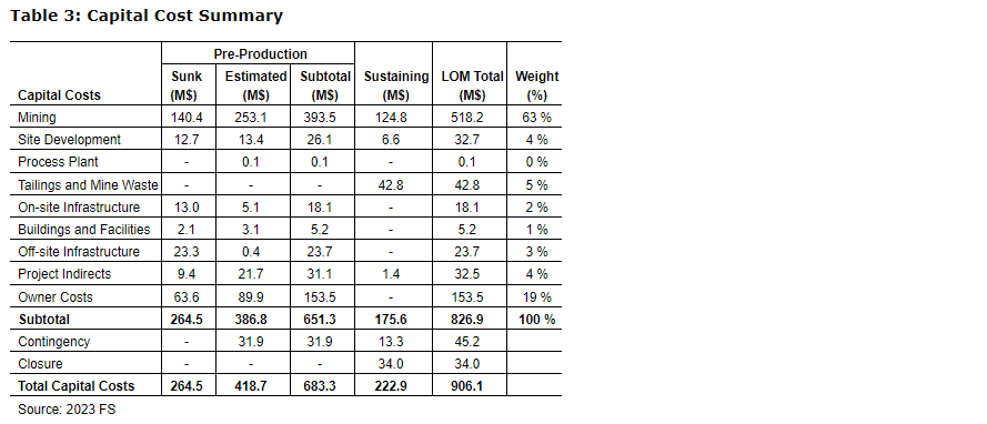 • Preproduction capital costs for the UGP totalling $683-million, to be expended over an eight-year preproduction construction and commissioning period until H2 2027, of which 3.5 years have already been successfully completed;