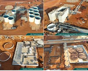- CIL tank construction is ongoing and tracking two months ahead of schedule with all concrete now poured and erection of all seven tanks on the first CIL train completed, while two of the seven tanks on the second CIL train have also recently been completed.