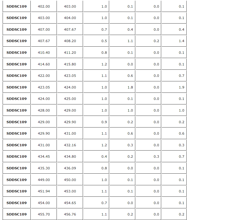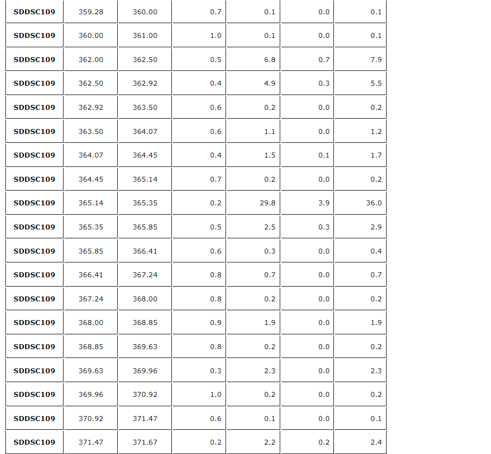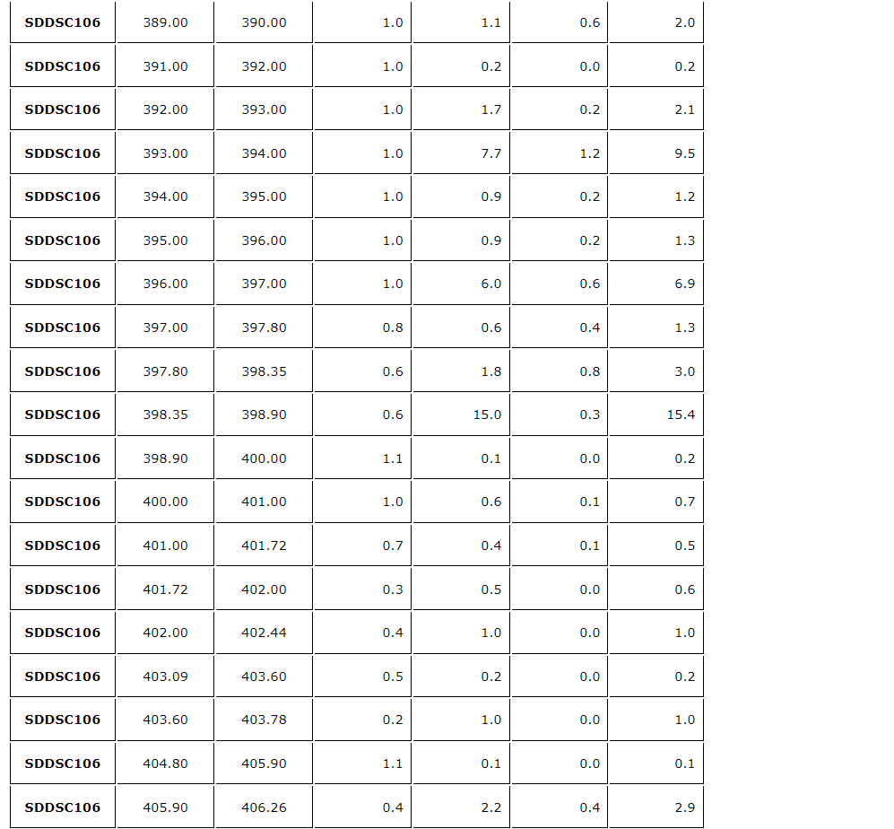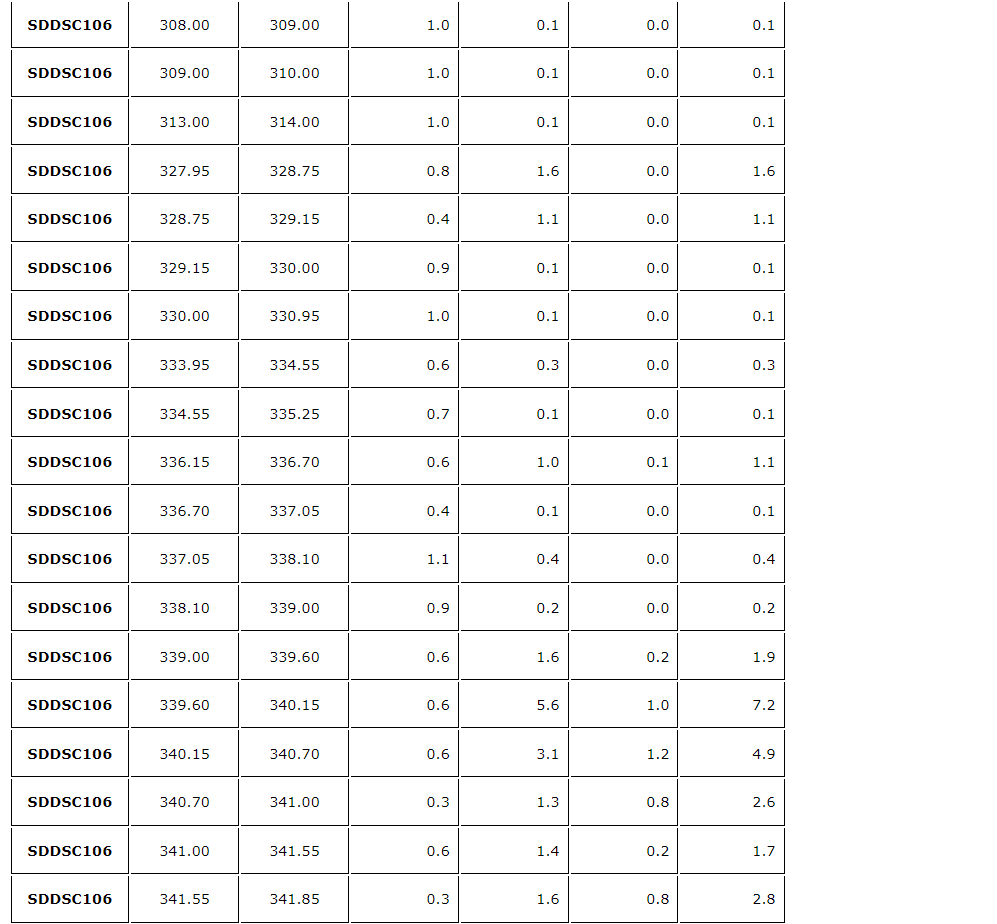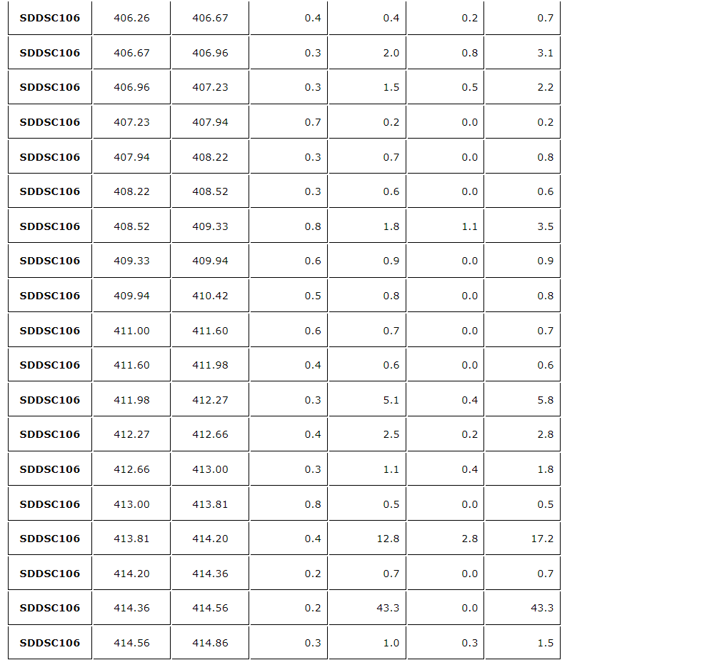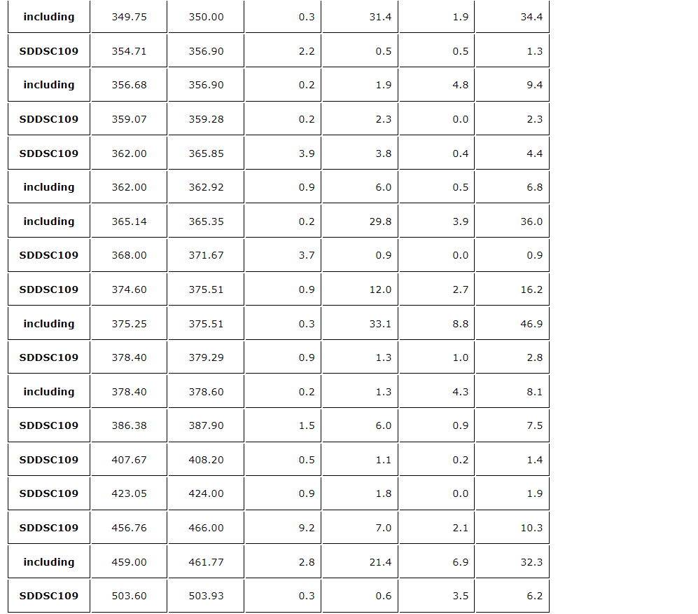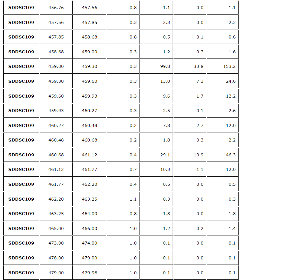 Eight holes (SDDSC107, SDDSC108A, SDDSC110, SDDSC111, SDDSC112, SDDSC112W1, SDDSC113 and SDDSC114) are currently being processed and analyzed, with three holes (SDDSC115A, SDDSC116 and SDDSC117) in progress.