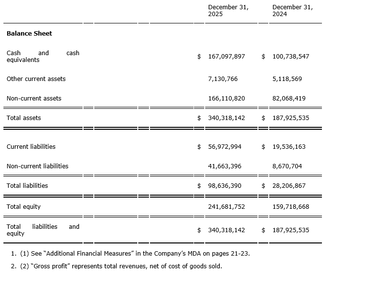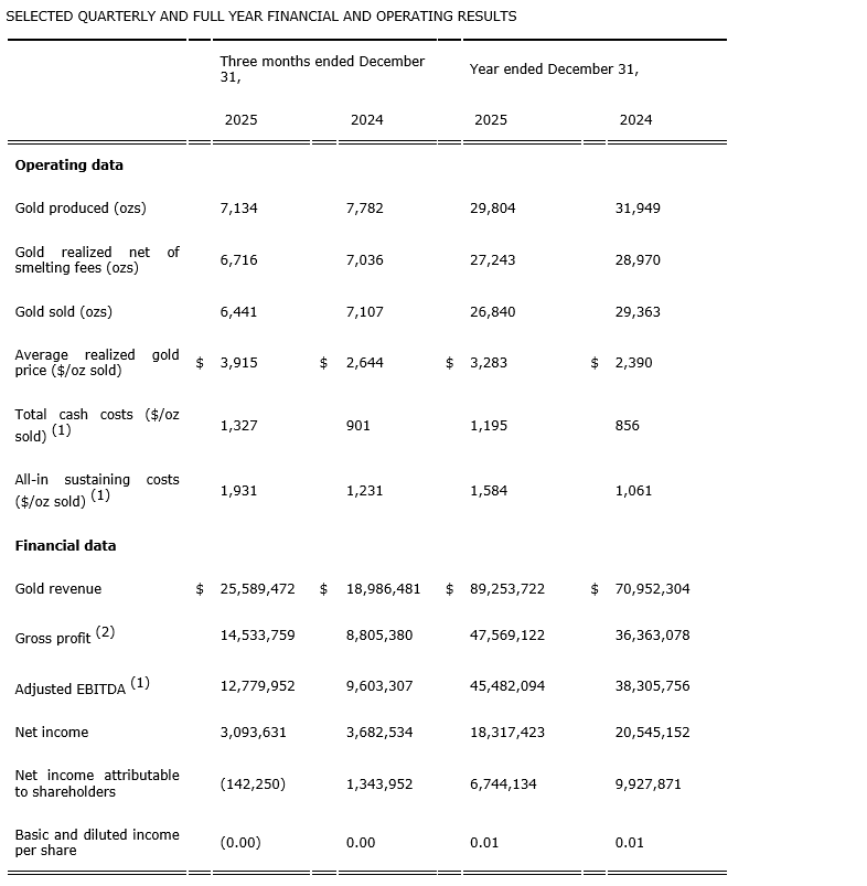 This news release should be read in conjunction with the company's audited consolidated financial statements for the year ended Dec. 31, 2025, and the associated MD&A, which are available on SEDAR+ and on the company's website.