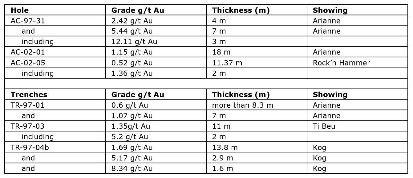 The surface sampling and drilling carried out at the time was specifically to verify the gold potential of the Amanda project. Several of these revealed the presence of gold near the surface and at depth.