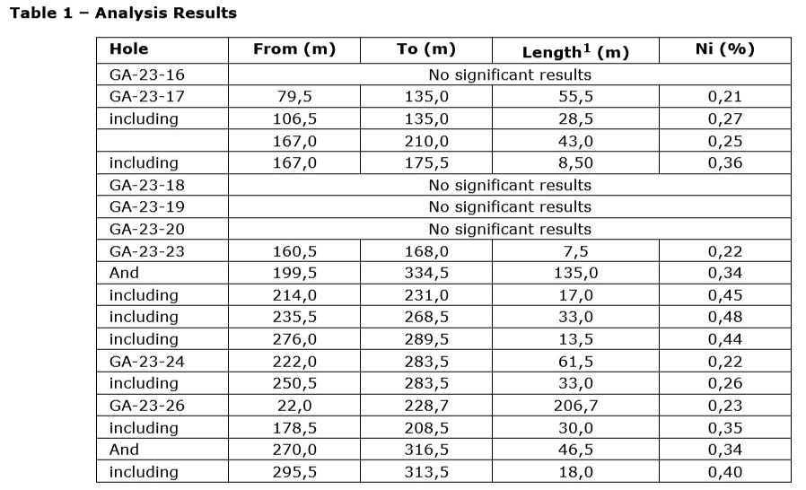 These results coupled with previous results (see map 2) seem to confirm a potential nickel-bearing zone of several kilometers.