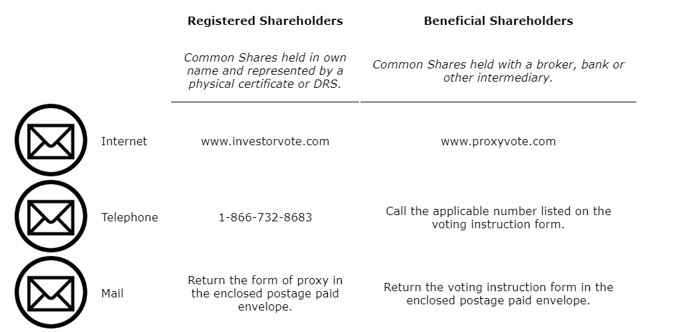Shareholders are encouraged to vote today through the Internet or telephone using the control number found on the proxy or voting instruction form that was mailed to you to ensure your vote is received in a timely manner.