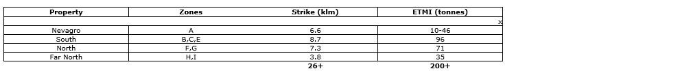 The potential quantity and grade of the exploration target mineral inventory (ETMI) disclosed herein are conceptual in nature. There has been insufficient exploration to define a mineral resource and it is uncertain if further exploration will result in the delineation of a mineral resource. The ETMI is not being reported as part of any mineral resource or mineral reserve estimate. The ranges presented are based on geological mapping, outcrop and trench sampling, and no economic analysis has been completed. Investors are cautioned that exploration targets must not be used as a proxy for mineral resources or reserves.