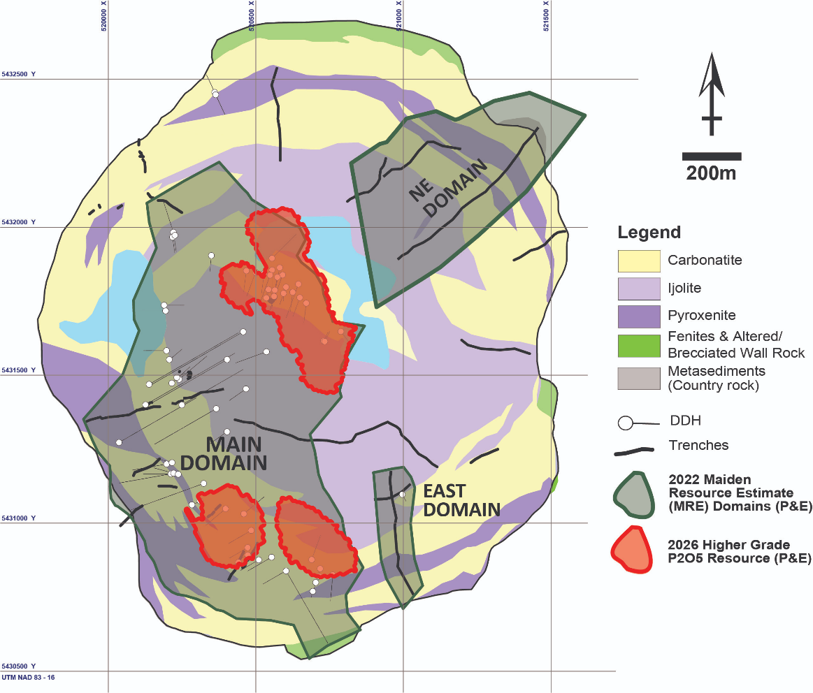 Toronto – TheNewswire - February 26, 2026 – Nuinsco Resources Limited (“ Nuinsco ” or the “ Company ”) (CSE: NWI, FRA: NJX) today announced a new subset (the “ MRE Subset ”) of the mineral resource estimate (the “ 2022 MRE ”) at its Prairie Lake Critical Minerals and Phosphate Project (“ Prairie Lake ” or the “Project” ) located near Terrace Bay, Ontario. The MRE Subset identifies a domain of mineralization with substantially higher phosphate (“ P 2 O 5 ”) and rare earth element (“ REE ”) grades compared with the 2022 MRE. The presence of this concentrated higher-grade mineralization within the MRE Subset may identify a possible starter pit location that could significantly enhance the development potential of the Project.