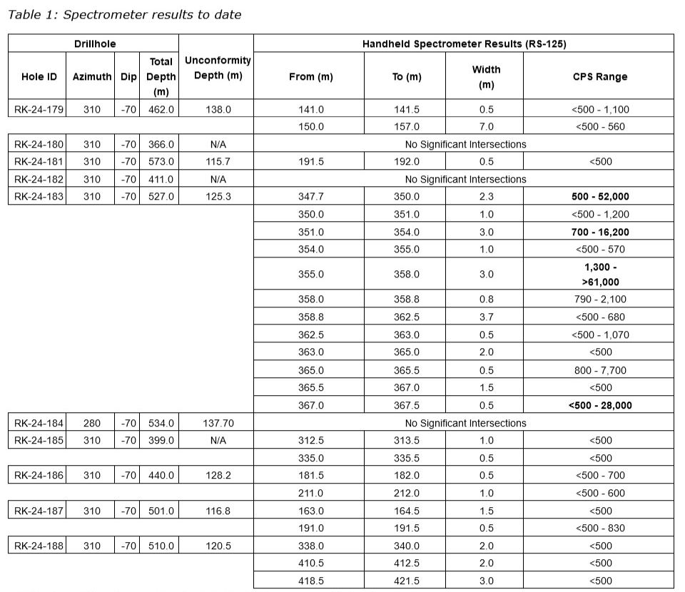 Leigh Curyer, chief executive officer, commented: "Ten years after the discovery of our world-class Arrow deposit, we are thrilled to be sharing this exciting news. This new intercept reflects the high potential of NexGen's extensive land package in the southwestern section of the Athabasca basin, Saskatchewan, and is a testament to the strategic and disciplined approach to identifying new Arrow-type zones of mineralization. Drilling activity is being fully dedicated to this new discovery area to advance our understanding of scope and scale of mineralization. This hole which intersected 3.0 metres of up to 61,000 cps is significantly better on all metrics than RK-14-21(the Arrow discovery hole) which intersected less than 0.5 metre of greater than 9,999 cps.