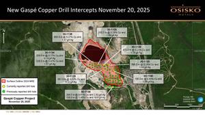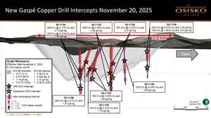 MONTREAL, Nov. 20, 2025 (GLOBE NEWSWIRE) -- Osisko Metals Incorporated (the “Company or "OsiskoMetals") (TSX: OM; OTCQX: OMZNF; FRANKFURT: 0B51) is pleased to announce new drill results from the Gaspé Copper Project, located in the Gaspé Peninsula of Eastern Québec.