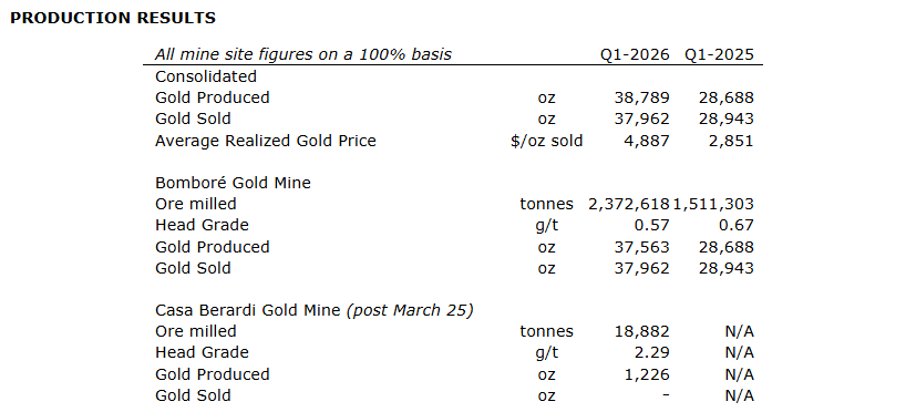 Patrick Downey, president and chief executive officer, commented: "The first quarter of 2026 included several important milestones for the company. In late March, the company closed its acquisition of Hecla Quebec, which included the operating Casa Berardi gold mine and a portfolio of exploration properties, all located in Quebec. With this transaction, Orezone is now a multiasset diversified producer with an established and self-funded growth profile.
